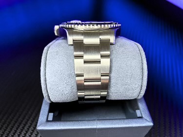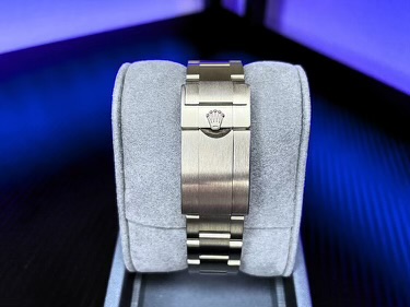 This watch comes with the following: outer beige and inner green Rolex boxes, green hang tag, white hang tag, all booklets, new style warranty card and full links. The new style warranty card is dated 05/24.