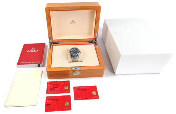 This watch is in excellent condition, showing very little sign of wear. It is complete with its original inner and outer Omega box, manuals and warranty card dated 2019. It is under Omega warranty until 2024.