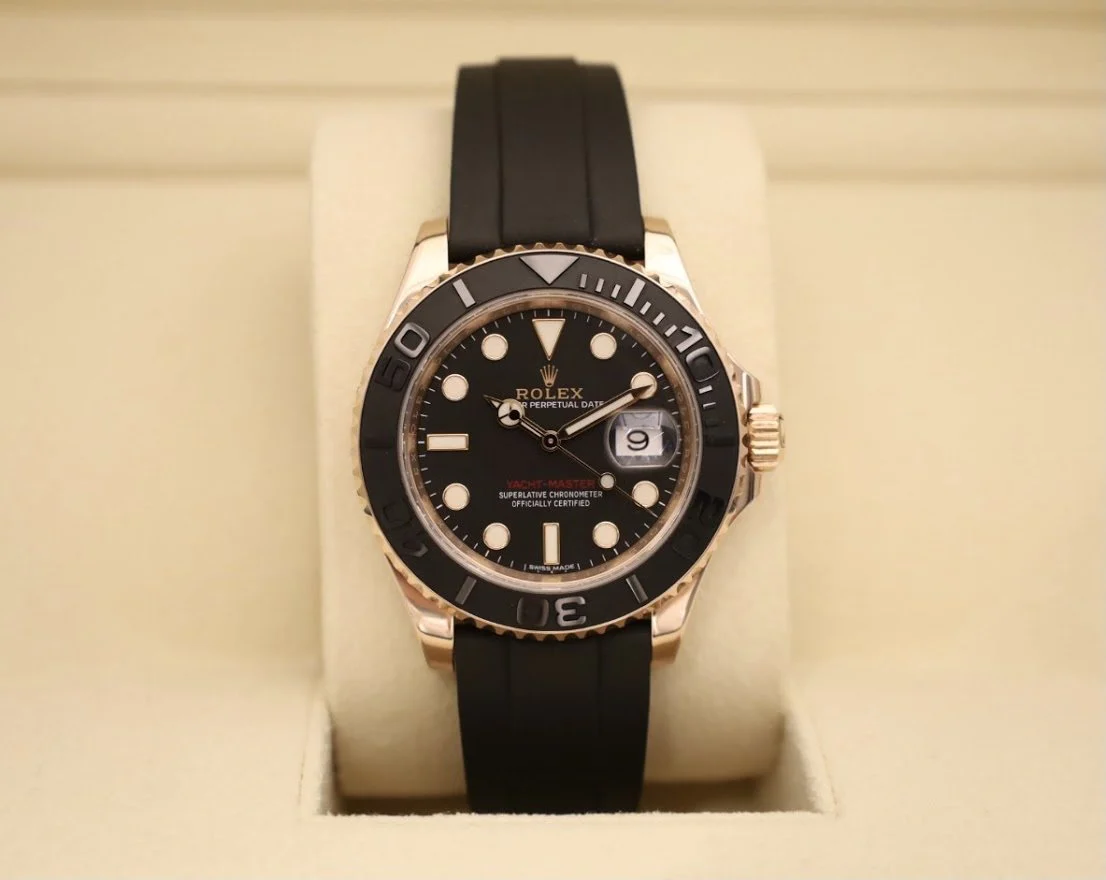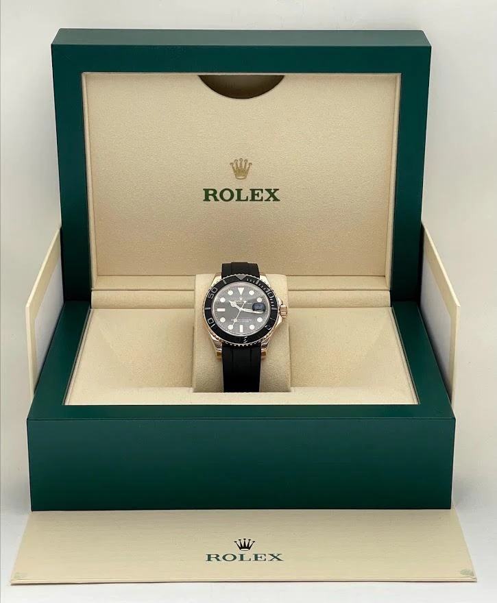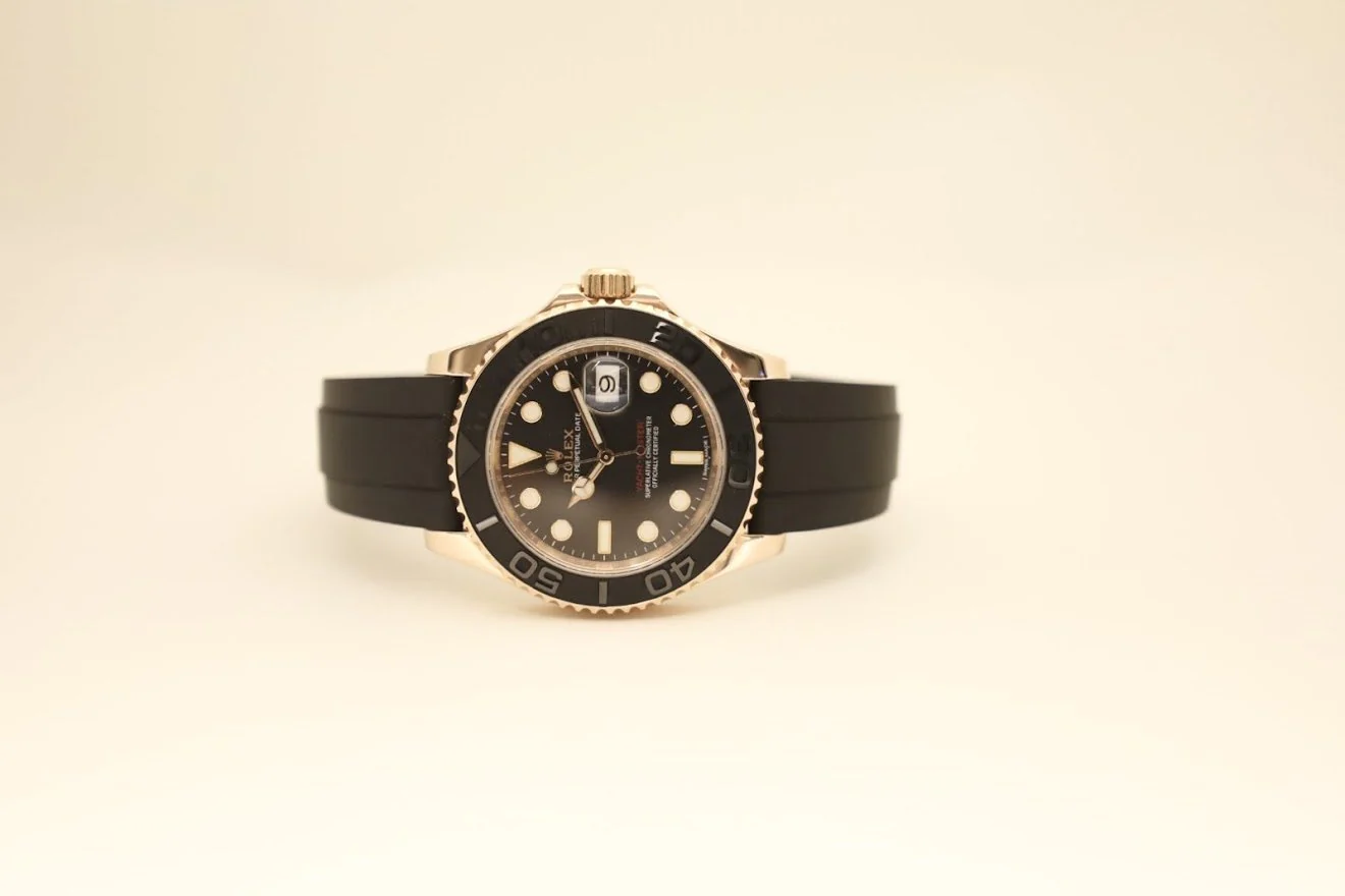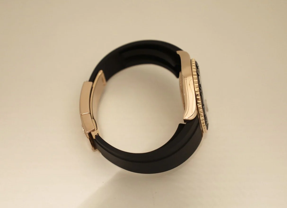 Rolex Yacht-Master 40 Rose Gold Everose 18k Black Dial Ceramic Bezel Oysterflex Rubber Bracelet 116655