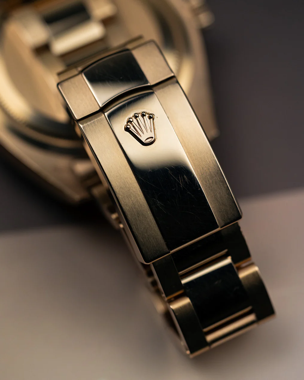 Encased in solid rose gold, the 42mm Sky-Dweller is an absolute heavy hitter. Paired with the chocolate dial balancing the warm tones of the rose gold on one of the most complex watch in Rolex’s collection.